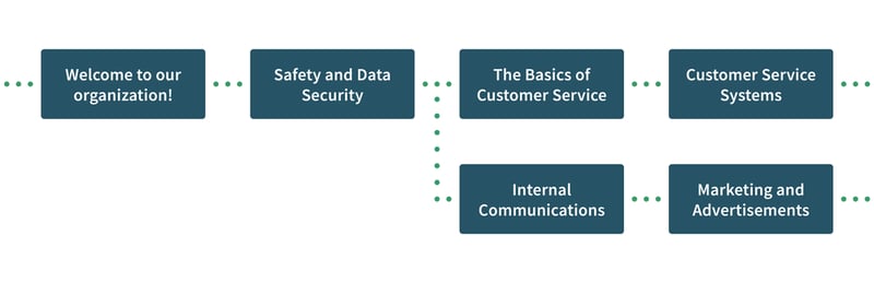 This is why organisations should create different learning paths for different roles so that each employee can learn about the matters that are relevant to their own job. While many of the basic skills are useful for each new employee, some parts of the content can be used for several learning paths.